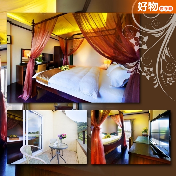 在這充滿典雅的空間裡,享受兩人甜蜜的世界,徹底的放鬆,裝潢及設備就像全新一樣,家具包括有電視、冰箱、除溼機、冷氣及衛浴,豪浪漫蜜月房還有專屬的陽台。